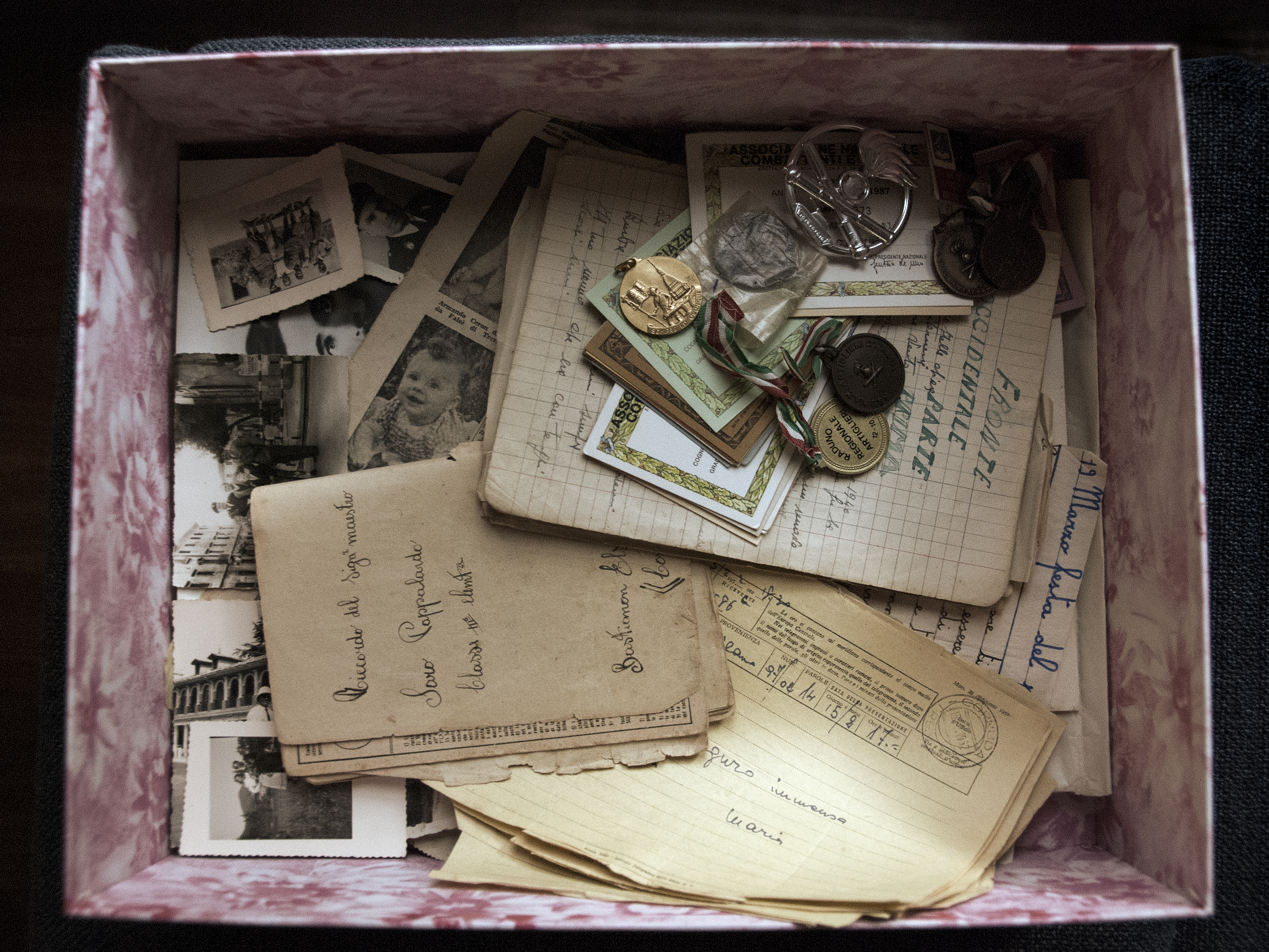 Confini che non limitano, che non dividono. Che sono frammenti di memoria racchiusi in una scatola, sul confine sottile tra il passato ed il presente. Caleidoscopi di impronte conservate nella coscienza, delimitate da un preciso spazio fisico. Contenitori di ricordi oltre il confine del tempo, in una sottile connessione tra passato e presente. Oggetti inanimati in un contenitore, pronti a ricevere il soffio vitale di uno sguardo: la potenza evocativa del confine tra quel che è stato e quel che è. Nutrimento per quel che sarà.