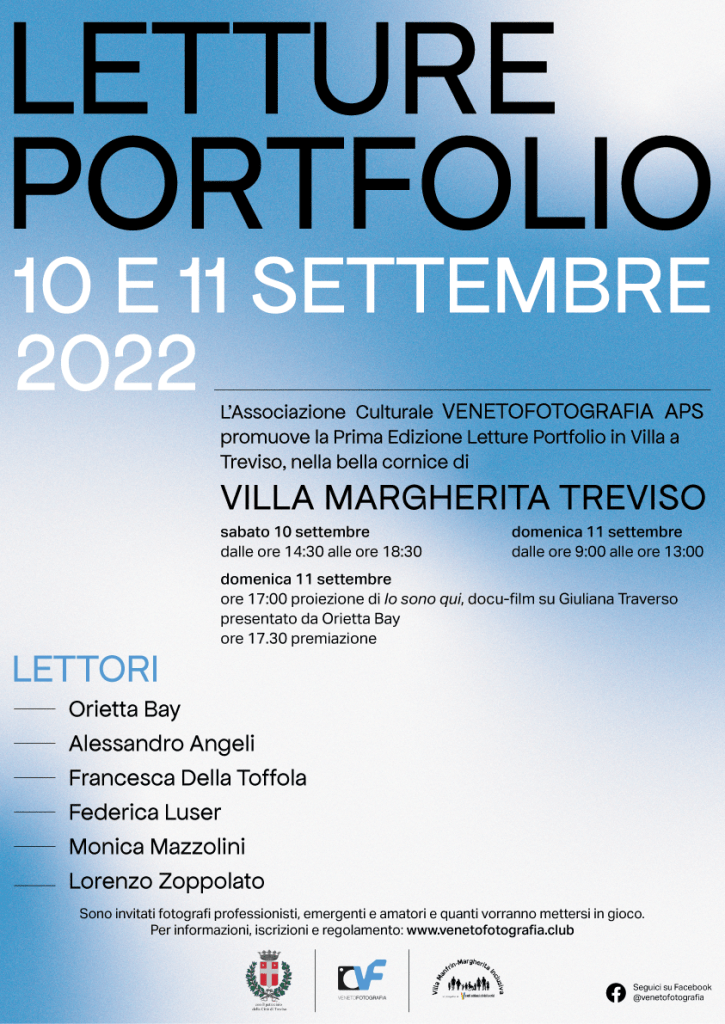 La prenotazione delle letture (2 per ogni Portfolio con un massimo di 2 Portfolio a persona) sarà effettuata tramite la scheda di partecipazione che potete scaricare qui. Inviare poi la scansione del modulo compilato all’indirizzo e-mail venetofotografiaclub@gmail.com.